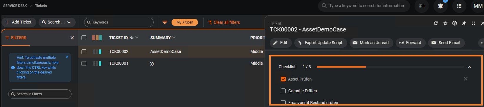 Nach diesem Guide wird in einem Ticket-Erstellen Dialog eine Checklist anhand eines Templates geladen.