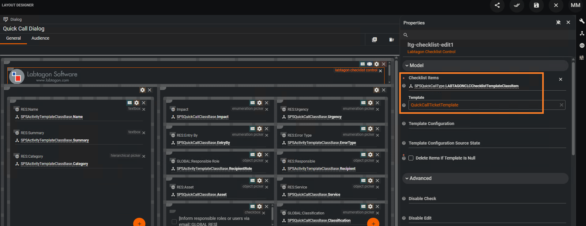 Öffne den Layout Designer und ziehe aus der Control-Suche das Labtagon Checklist Control in das Layout.