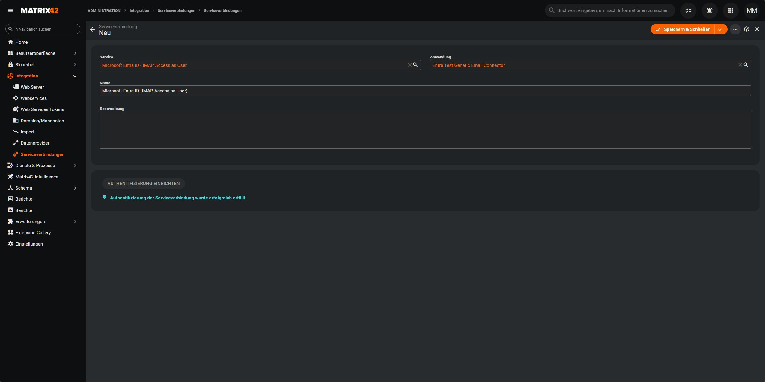 Administration > Integration > Serviceverbindungen > Serviceverbindungenund erstelle eine neue Serviceverbindung.- Wähle