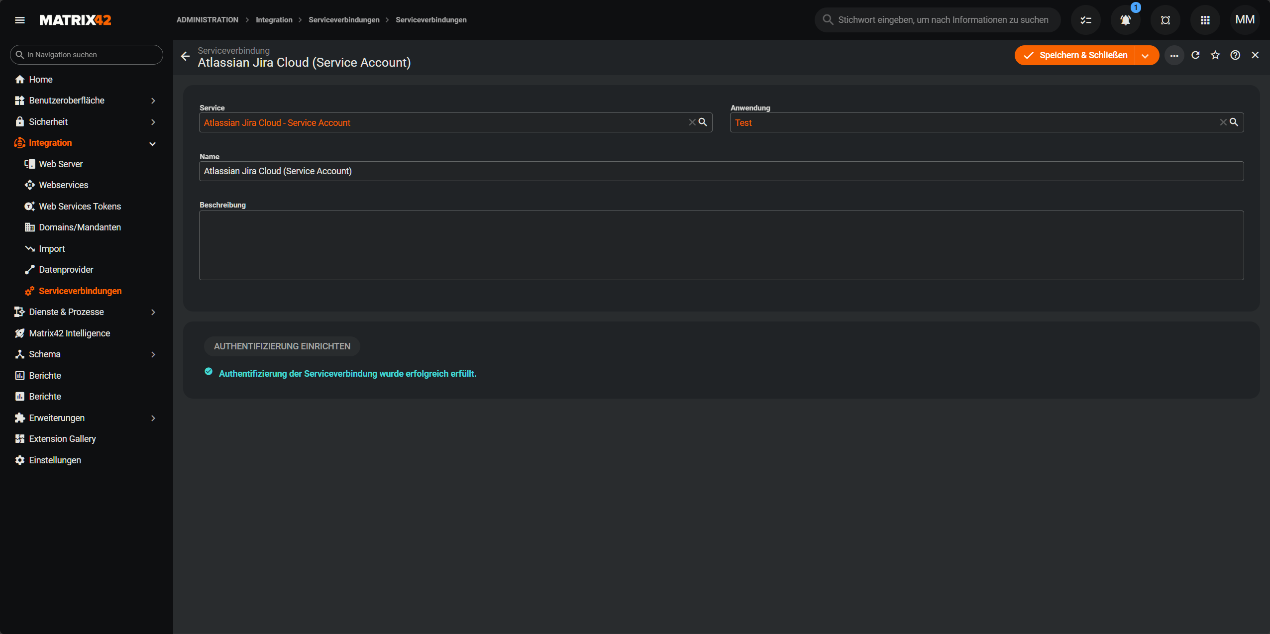 Administration > Integration > Serviceverbindungen > Serviceverbindungenund erstelle eine neue Serviceverbindung.