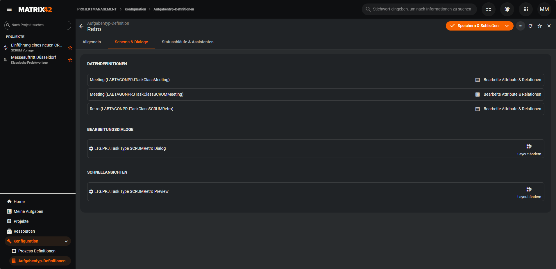 Diese erstellten Elemente findest du im Bearbeitungsdialog der Aufgabentyp-Definition in der Ansicht Schema & Dialoge und kannst sie dort über die entsprechenden Buttons direkt bearbeiten.