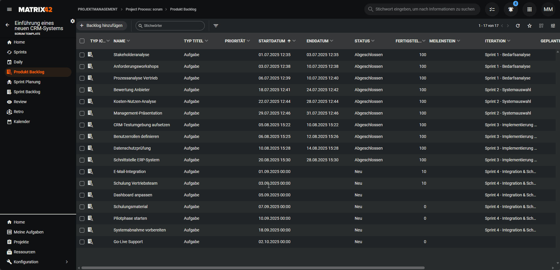 SCRUMBacklog) - Anfangszustand: Neu