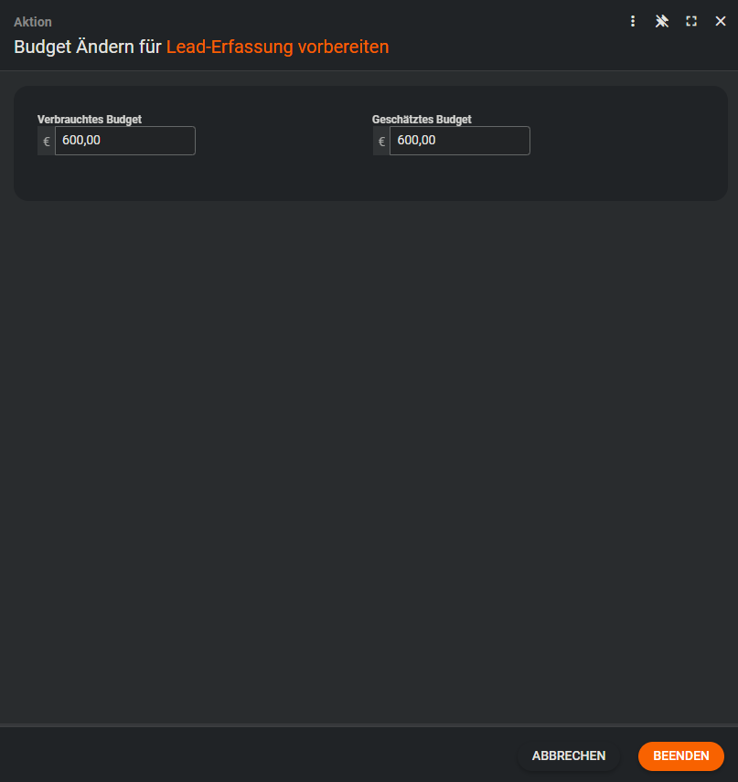 ChangeBudget - Ermöglicht das Bearbeiten des verbrauchten und geschätzten Budgets.