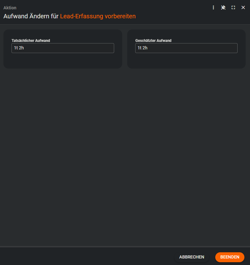 Aufwand ändern