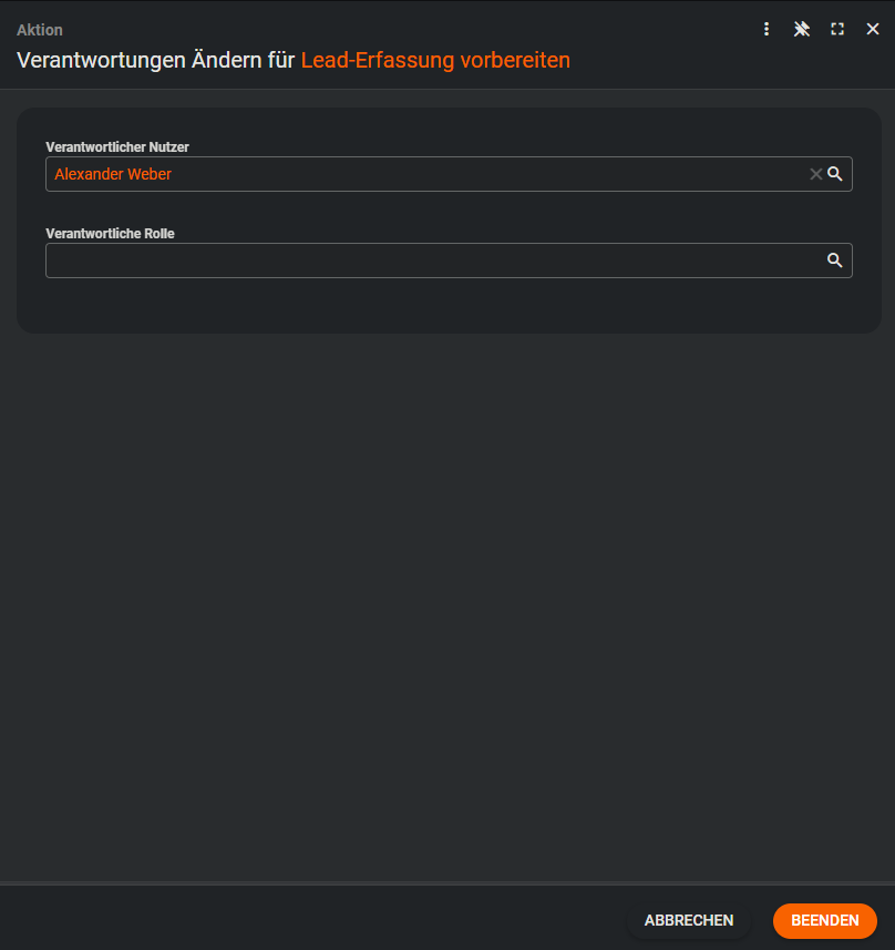 ChangeResponsibilities - Ermöglicht das Bearbeiten der verantwortlichen Rolle und des verantwortlichen Nutzers.